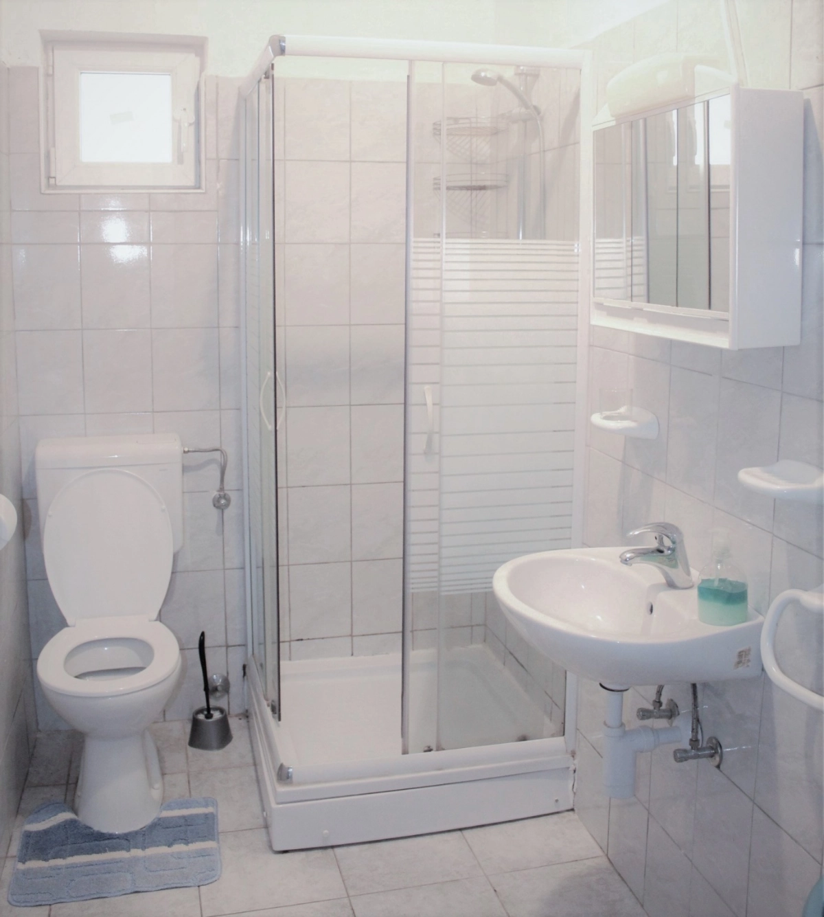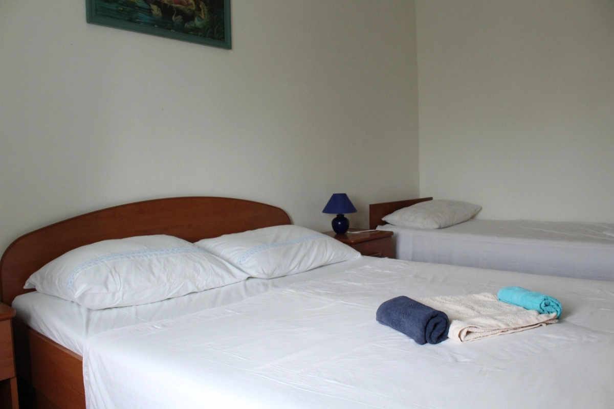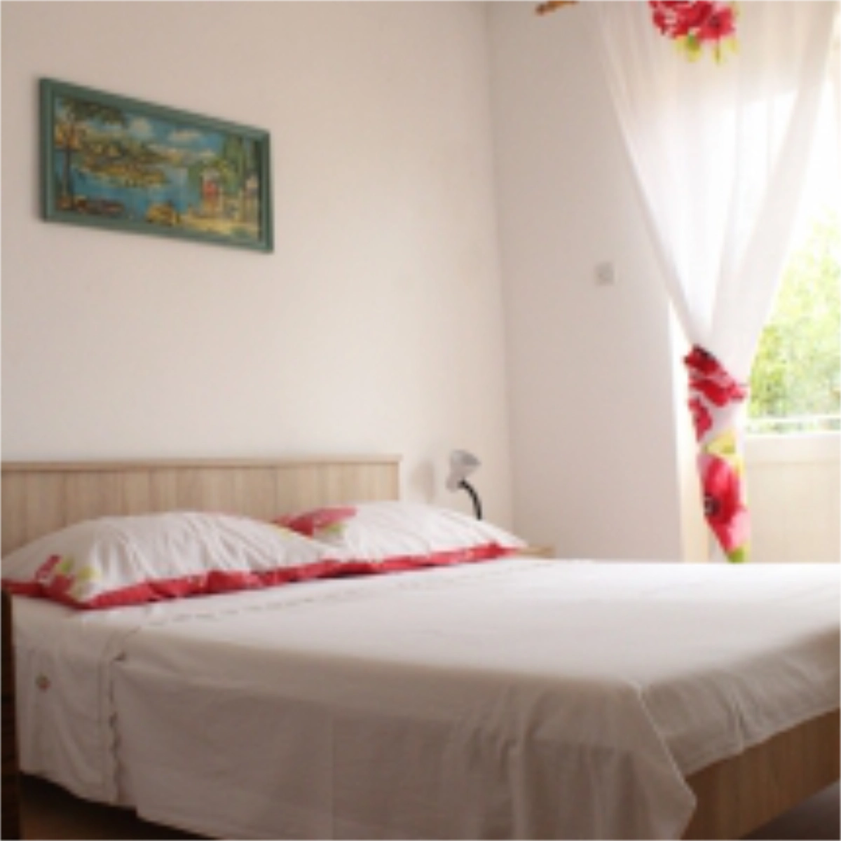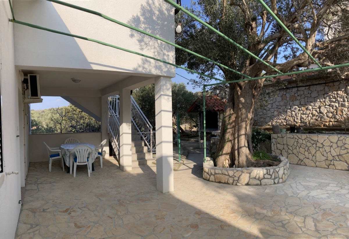 Un appartement pour 4+2 personnes, qui dispose de 70 m², avec une terrasse et un balcon, une cuisine ouverte sur la salle à manger, deux chambres triples, une salle de bain avec douche, un barbecue, climatisation et Parking