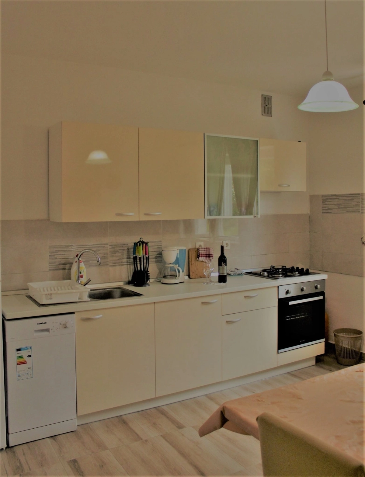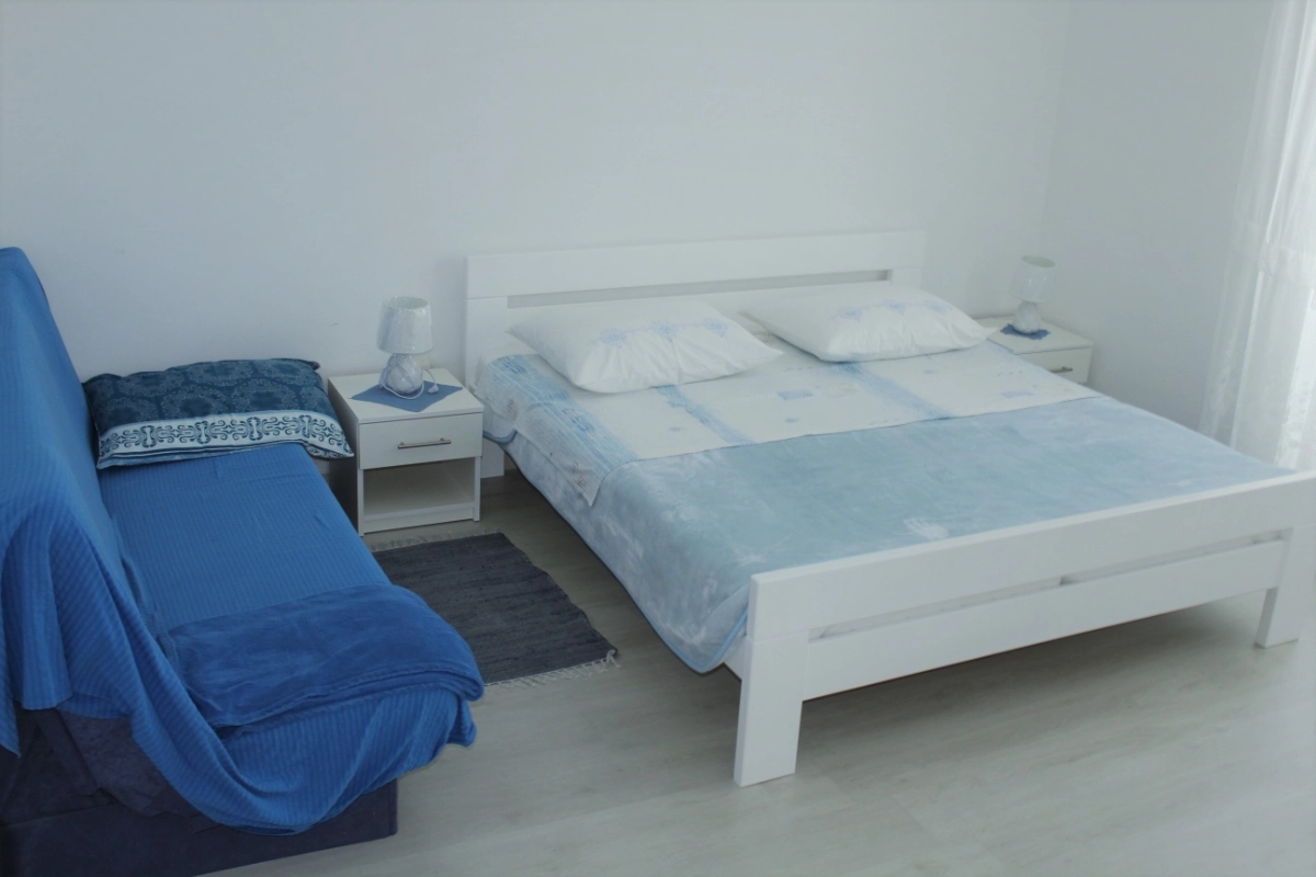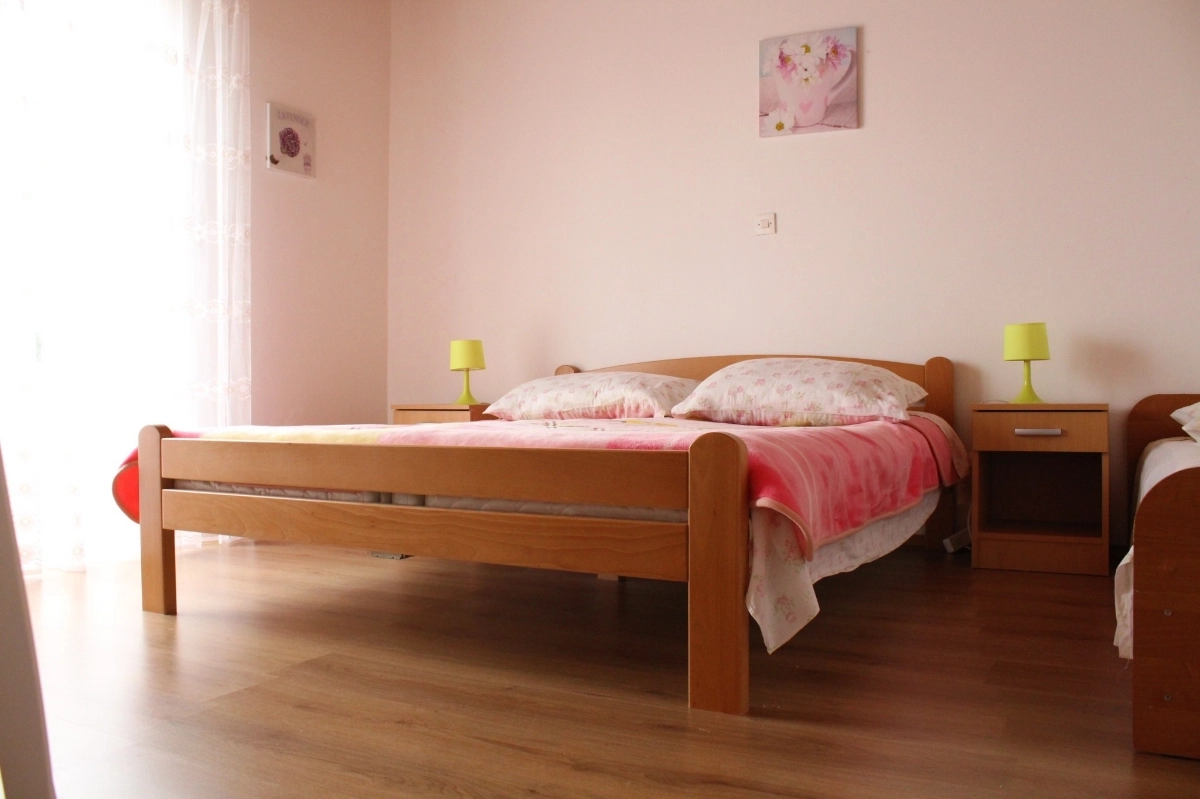 Apartman Kristina je naš najveći apartman za 6 + 2 osobe, ima 100 m2, terasu, balkon, kuhinju, dnevni boravak i blagovaonu u jednom prostoru, dvije kupaonice, tri sobe, roštilj, klimu i parkiralište.